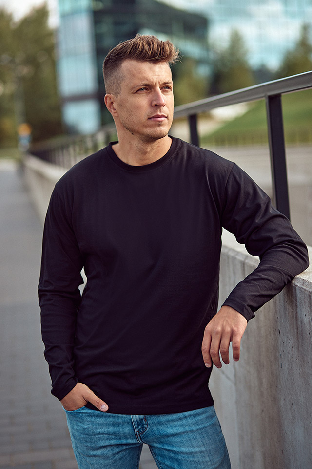 Męski longsleeve to must-have w każdej garderobie. Sprawdza się doskonale zarówno w casualowych, jak i bardziej formalnych stylizacjach. Dzięki swojej prostocie i uniwersalnemu krojowi można go nosić na co dzień, do pracy, na spotkania ze znajomymi czy weekendowe wypady. Bawełniany materiał zapewnia komfort noszenia przez cały dzień, a klasyczny design sprawia, że pasuje do wszystkiego – jeansów, chinosów czy nawet bardziej eleganckich spodni.