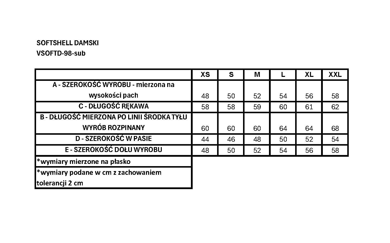 TABELA ROZMIARÓW: