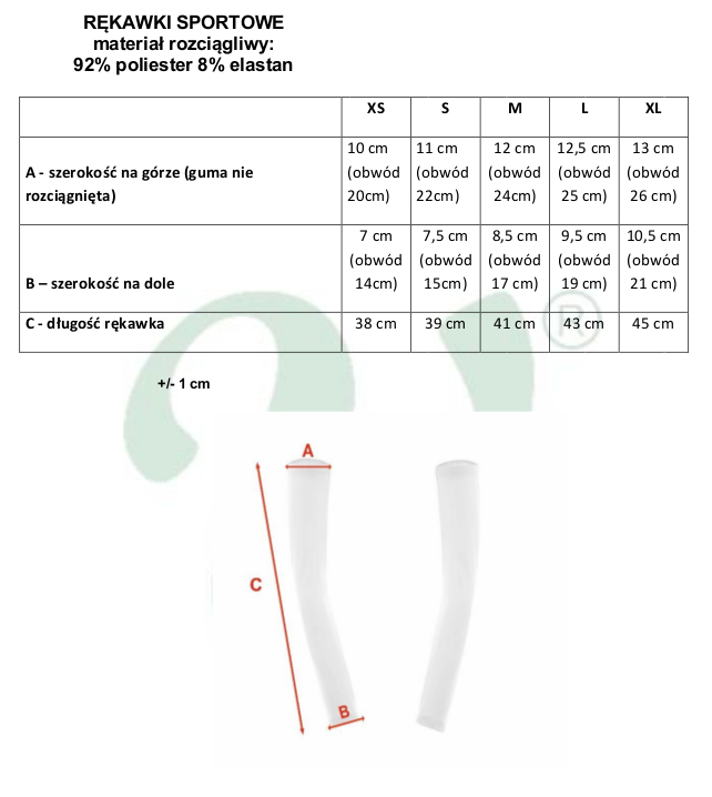 w górnej części wszyta specjalna guma, dzięki czemu rękawki nie zsuwają się z ramienia.