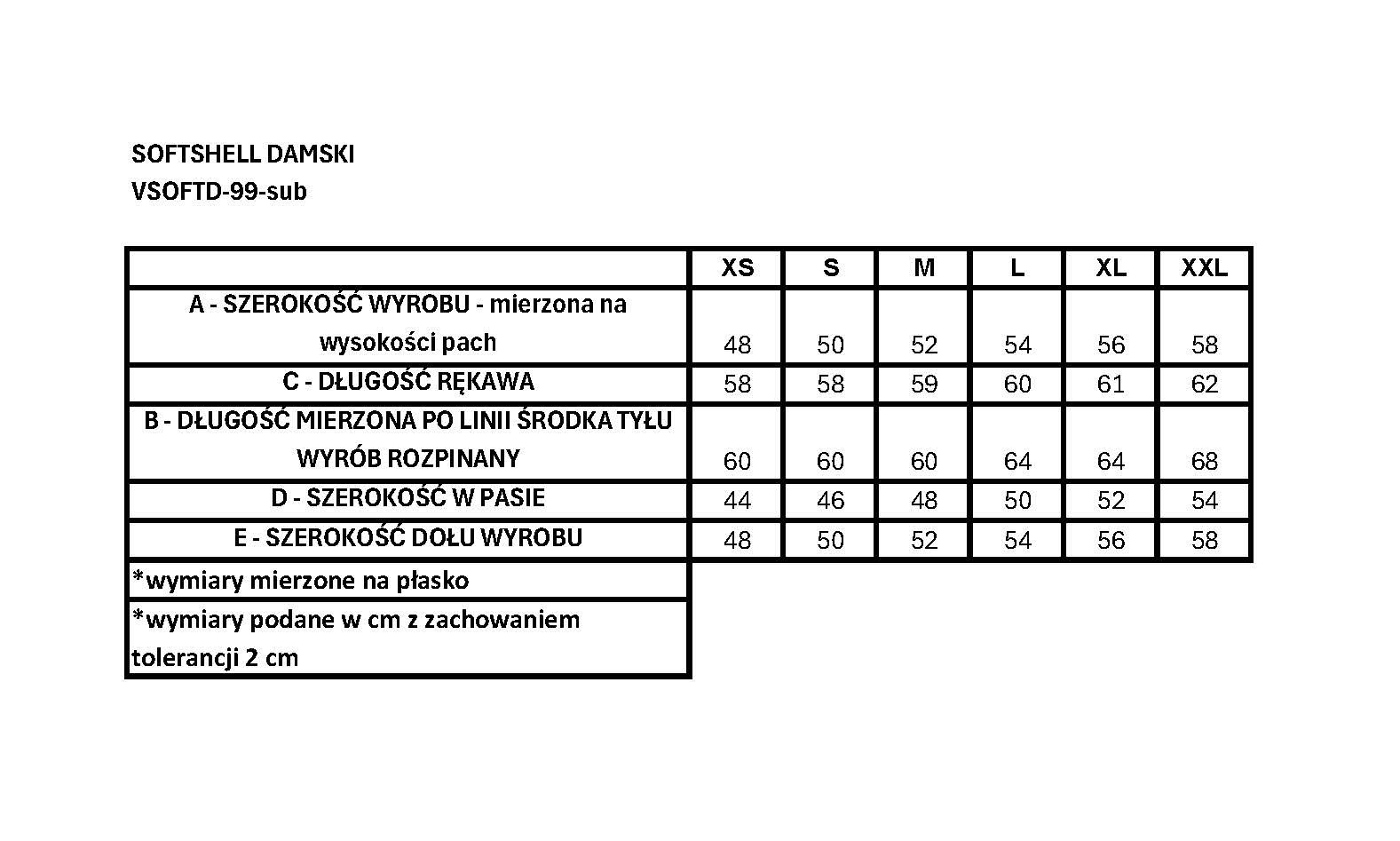 TABELA ROZMIARÓW:
